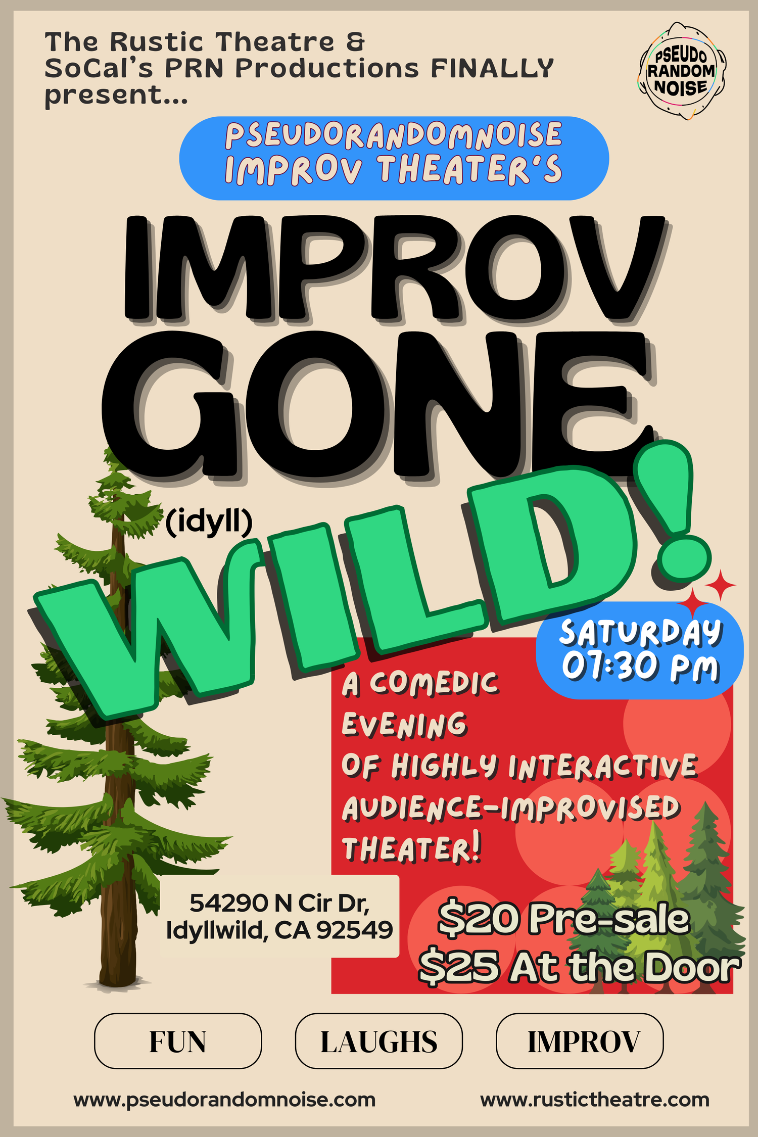 Our very 1st collaboration with Idyllwild's Rustic Theatre - it's PRN's BEST mix of hilarious improv done up mountain style in the pines of Idyllwild!