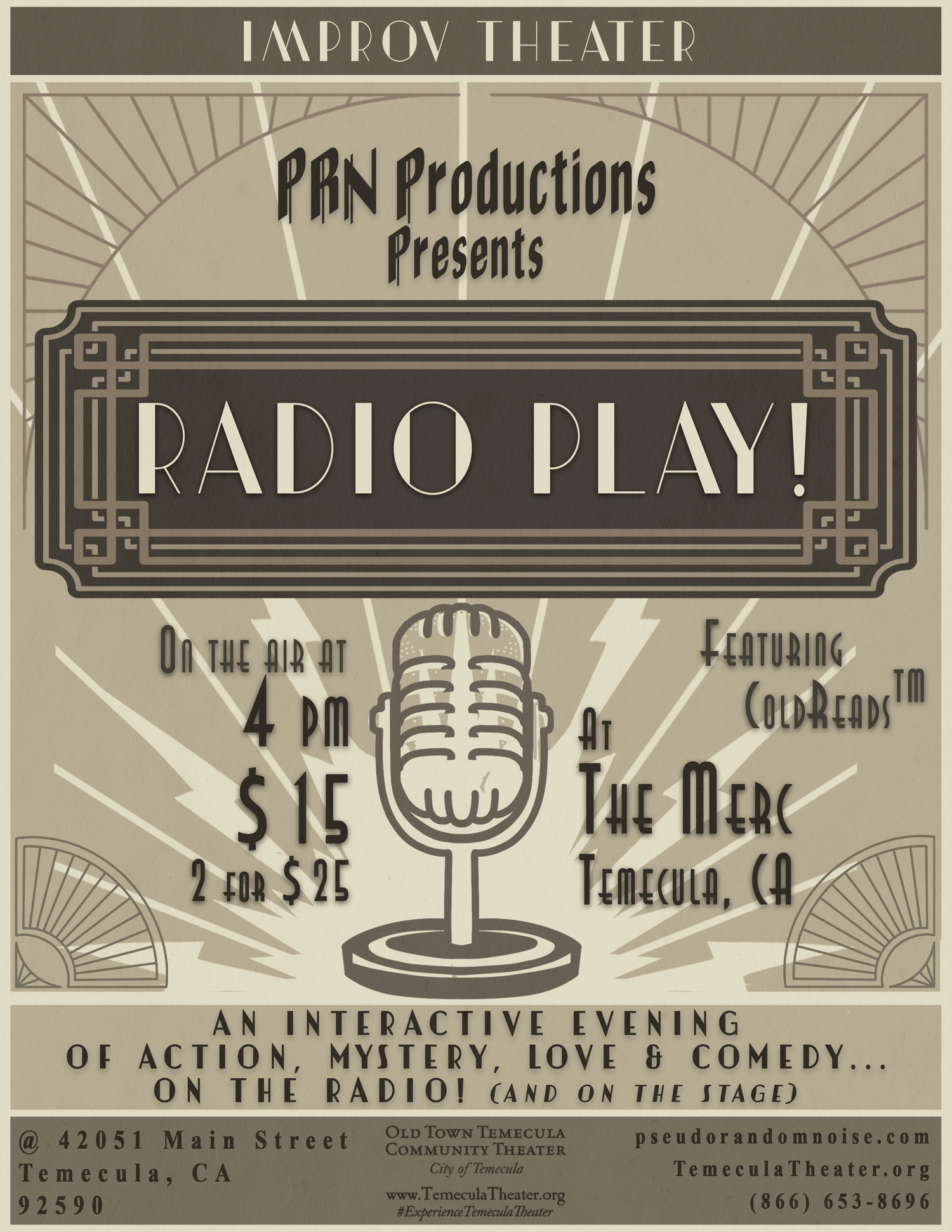 Time travel back to the 1940's for the best in improvised radio-style stage plays with KPRN's crack radio station staff who do their best to see if they can get the shows ON THE AIR...MAYBE!